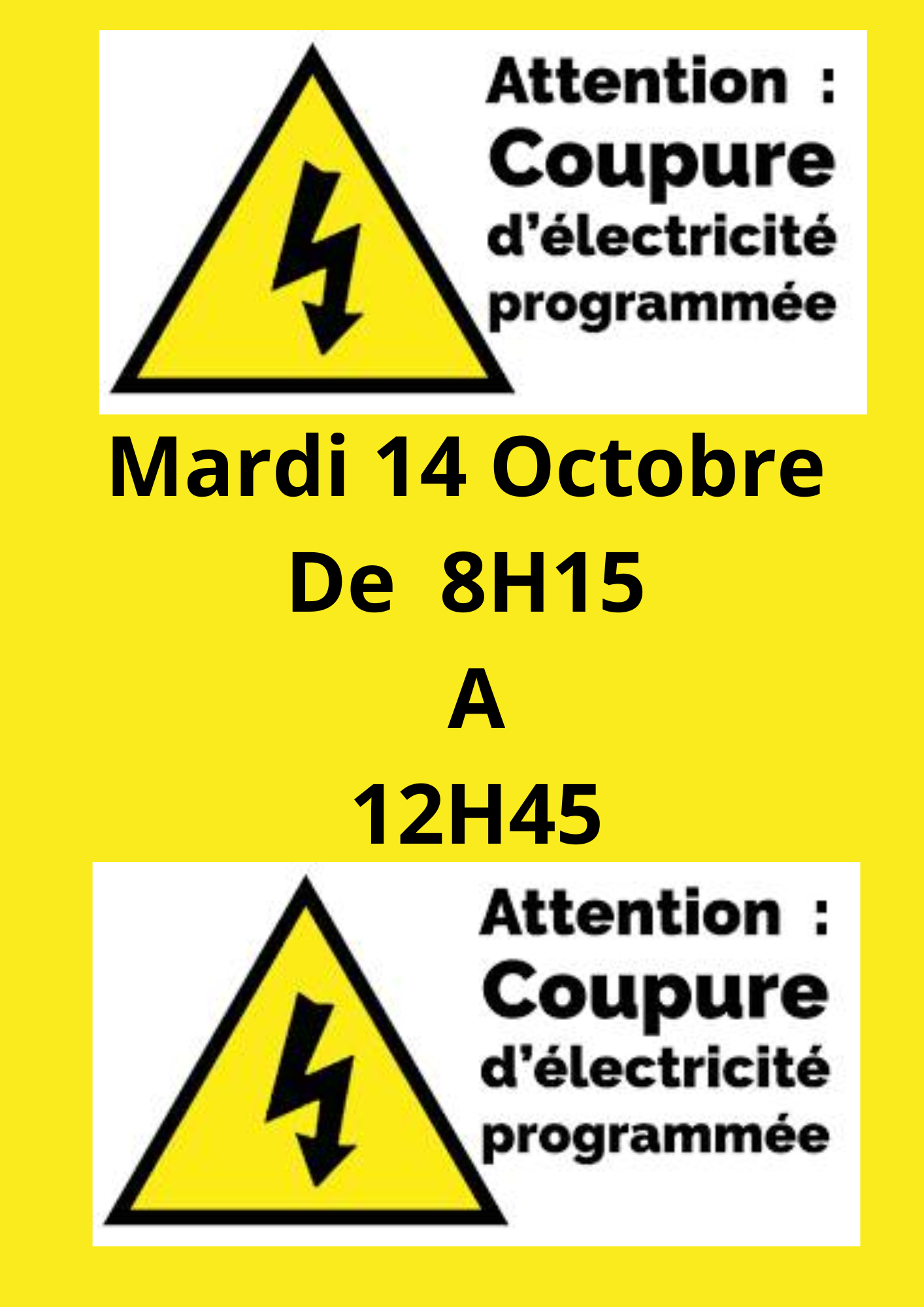 14 Octobre 2025 COUPURE ELECTRICITE PROGRAMMEE